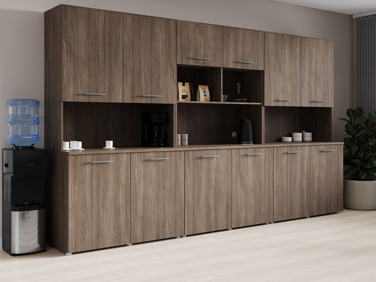 С офисными кухнями Fit вы создадите уютное место для отдыха и перекуса, делая каждый рабочий день более комфортным. Они оснащены всеми необходимыми элементами: удобные шкафы для хранения, эргономичная рабочая поверхность и универсальный дизайн, который гармонично впишется в любой интерьер.