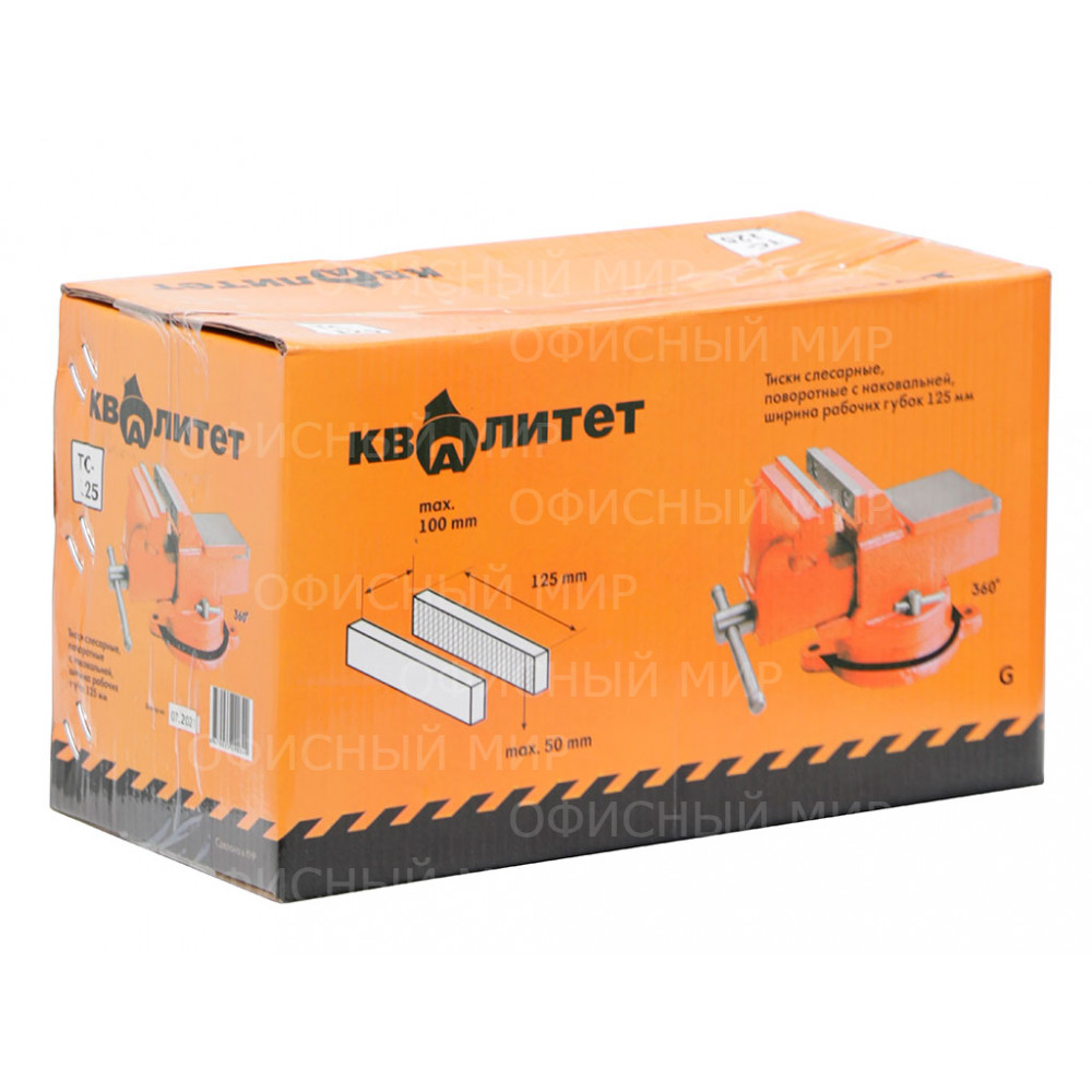 Слесарные тиски ТС-125 поворотные с наковальней. Тиски предназначены для стационарной установки, поворотный механизм позволяет подобрать нужный угол установки детали для обработки. Не требуют специального обслуживания.