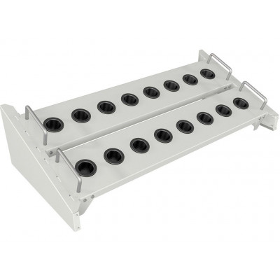 На полке установлено 16 шт держателей SK 40 тип покрытия: порошковое;полки устанавливаются горизонтально и под наклоном 20° пластиковые держатели в комплекте полки на полках установлены ручки для удобства перемещения