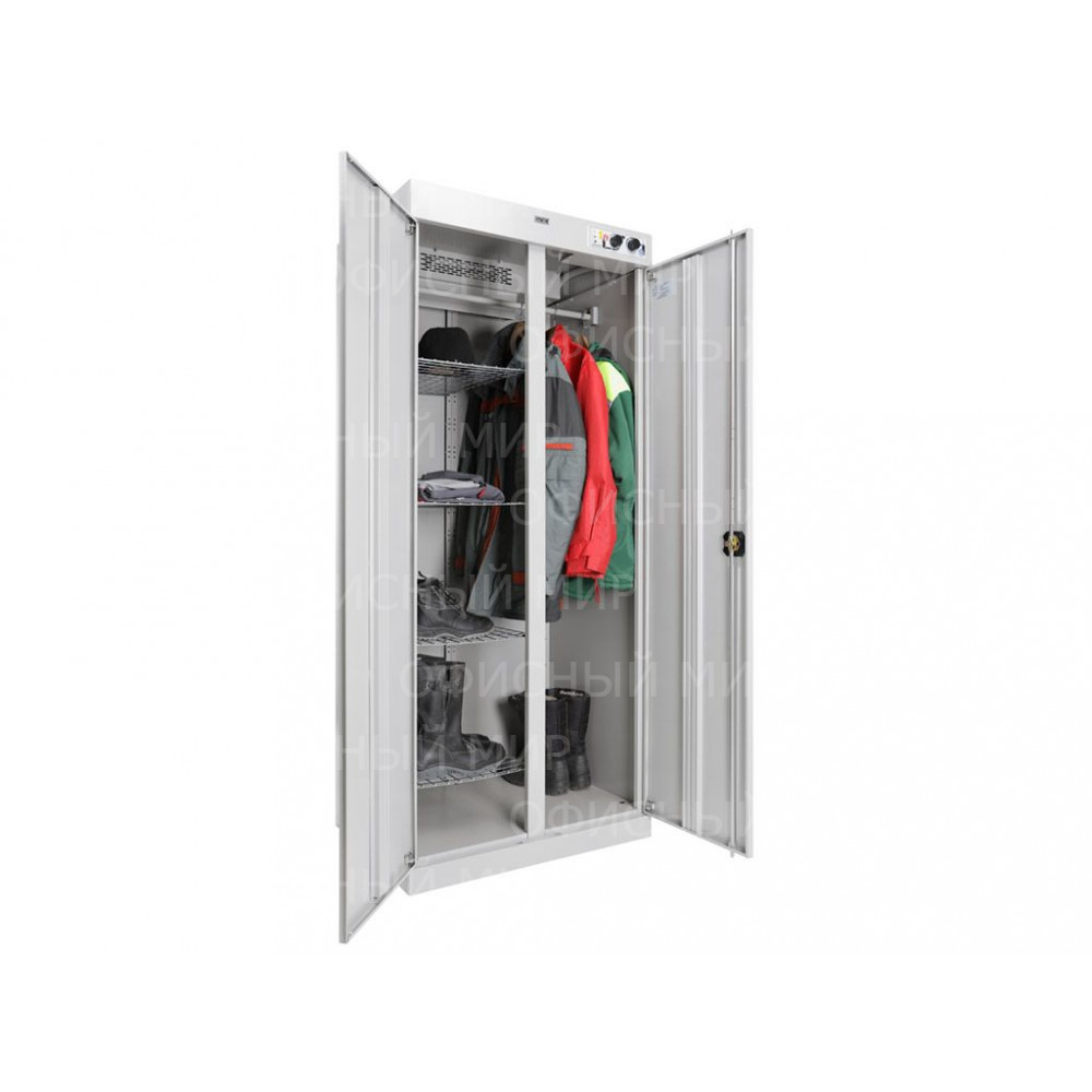 Вместительность. Глубина шкафа 600 мм позволяет сушить объёмные вещи, в том числе спецовки и зимние куртки.