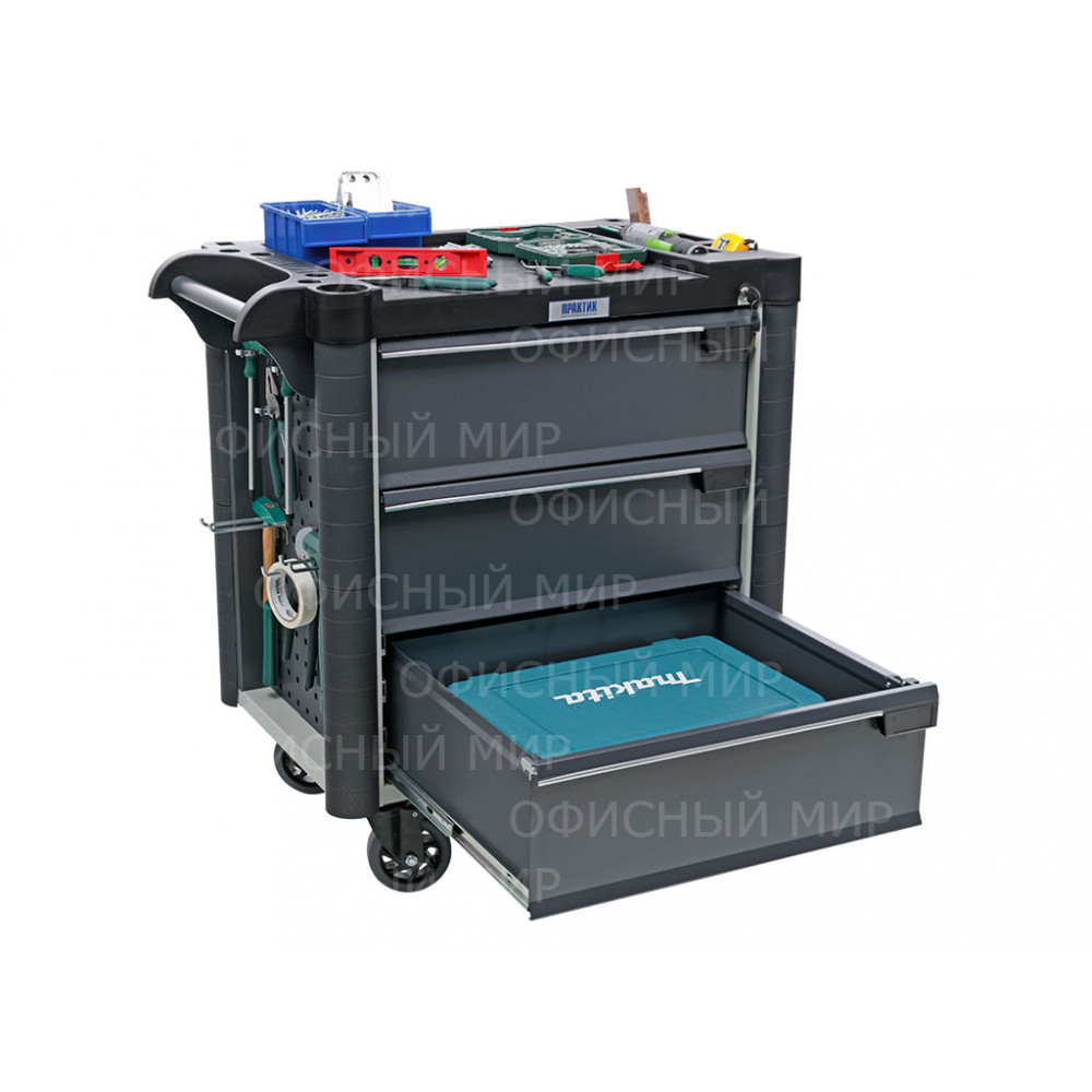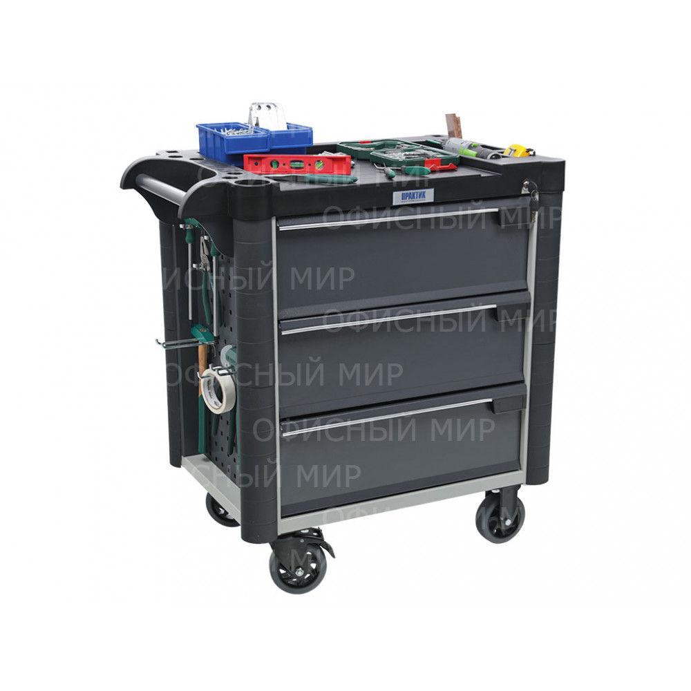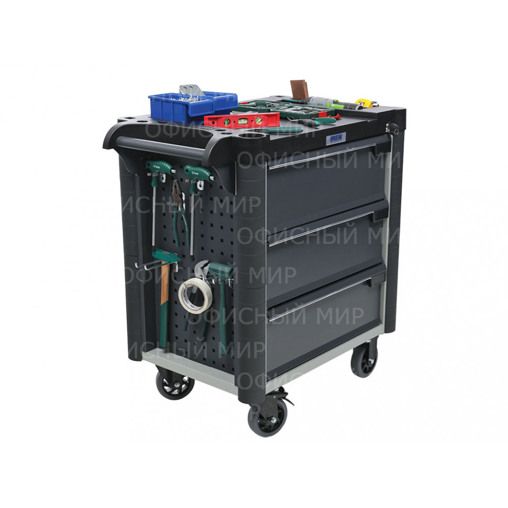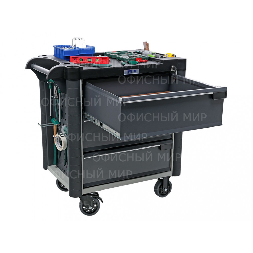 • Топ (пластик черного цвета) оснащён ложементами под инструменты для организации, хранения и удобства использования во время выполнения работ. Нагрузка на ТОП – 40 кг