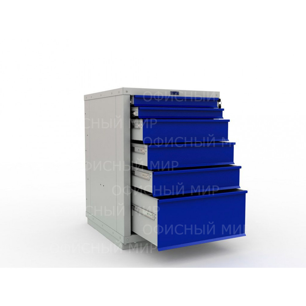 Корпус тумбы – серый (RAL 7038, шагрень), ящики тумбы, экран, косынки – синий (RAL 5002, шагрень)