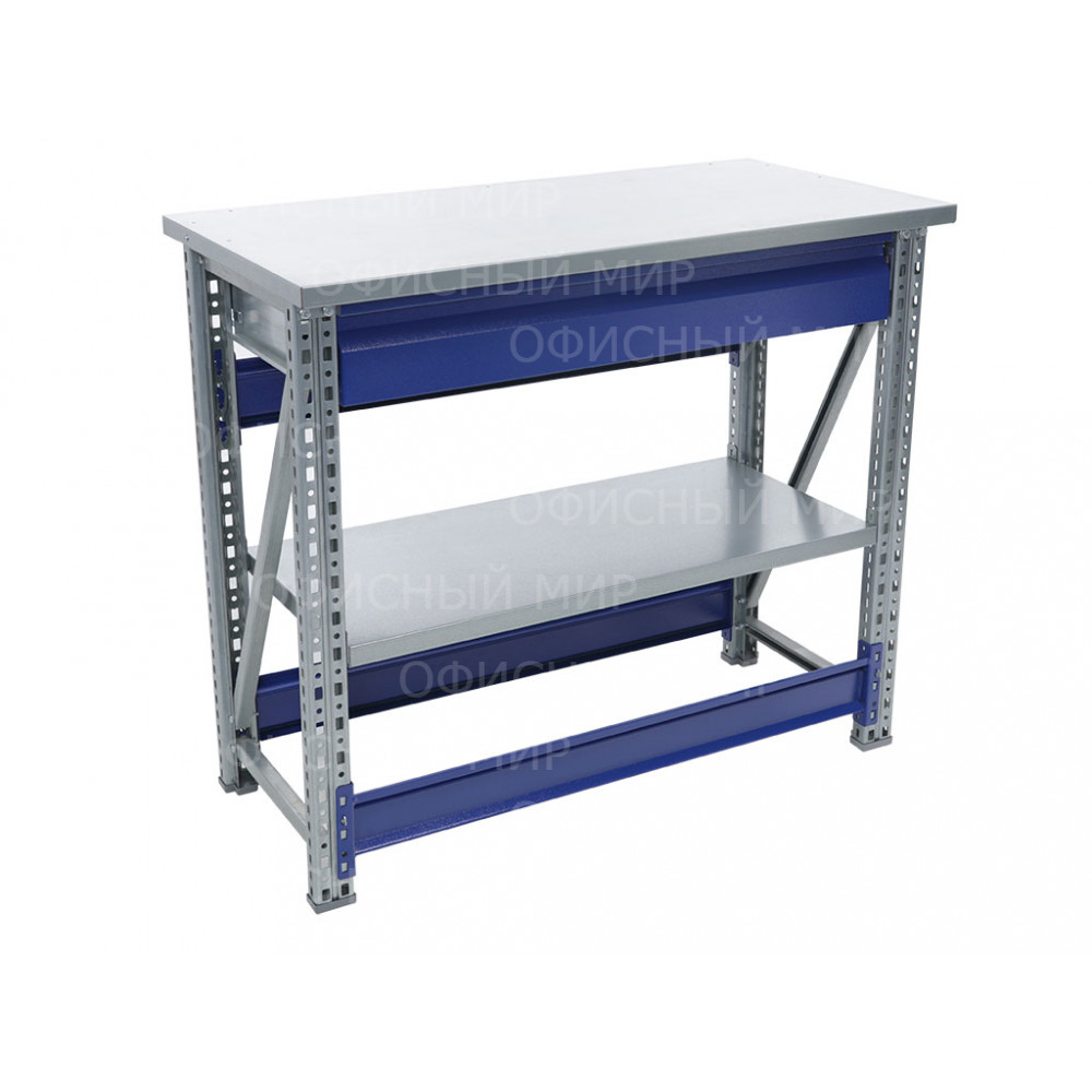 Возможность дополнить верстак полкой (нагрузка 100 кг) и выдвижным ящиком (нагрузка 30 кг).
