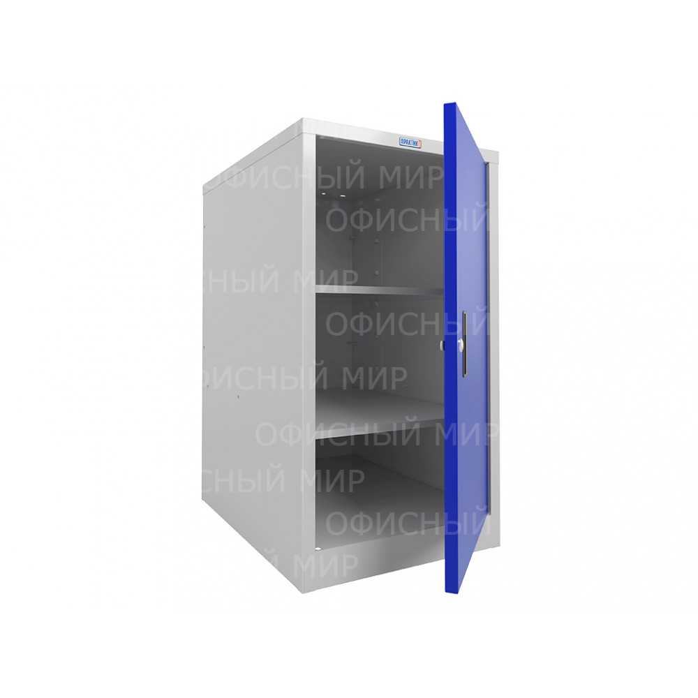 Тумба укомплектована 2-мя съемными регулируемыми полками и 1 дверцей, возможность смены стороны открывания двери. Ключевой замок на дверце тумбы. Нагрузка на полку 30 кг