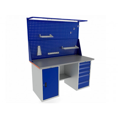 Дополнительно верстак можно укомплектовать перфорированным экраном соответствующего размера, светодиодным освещением и аксессуарами для инструментов.