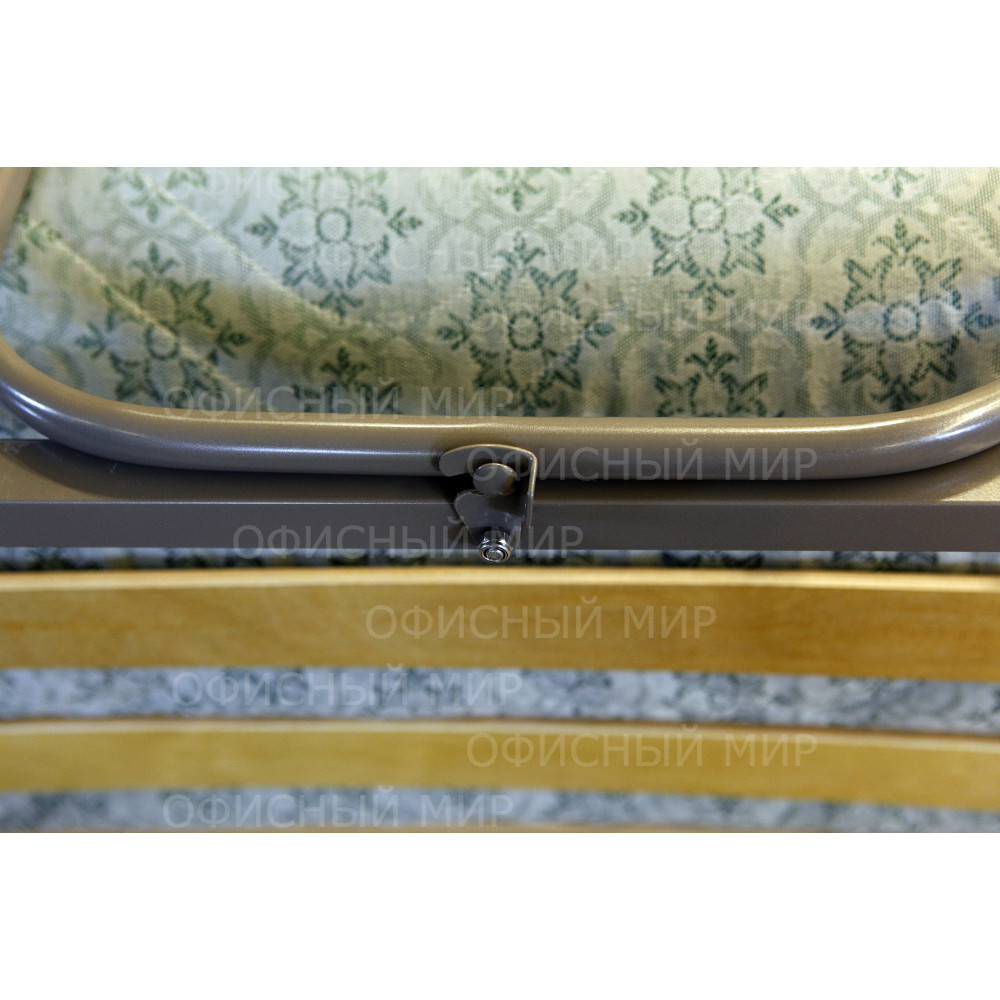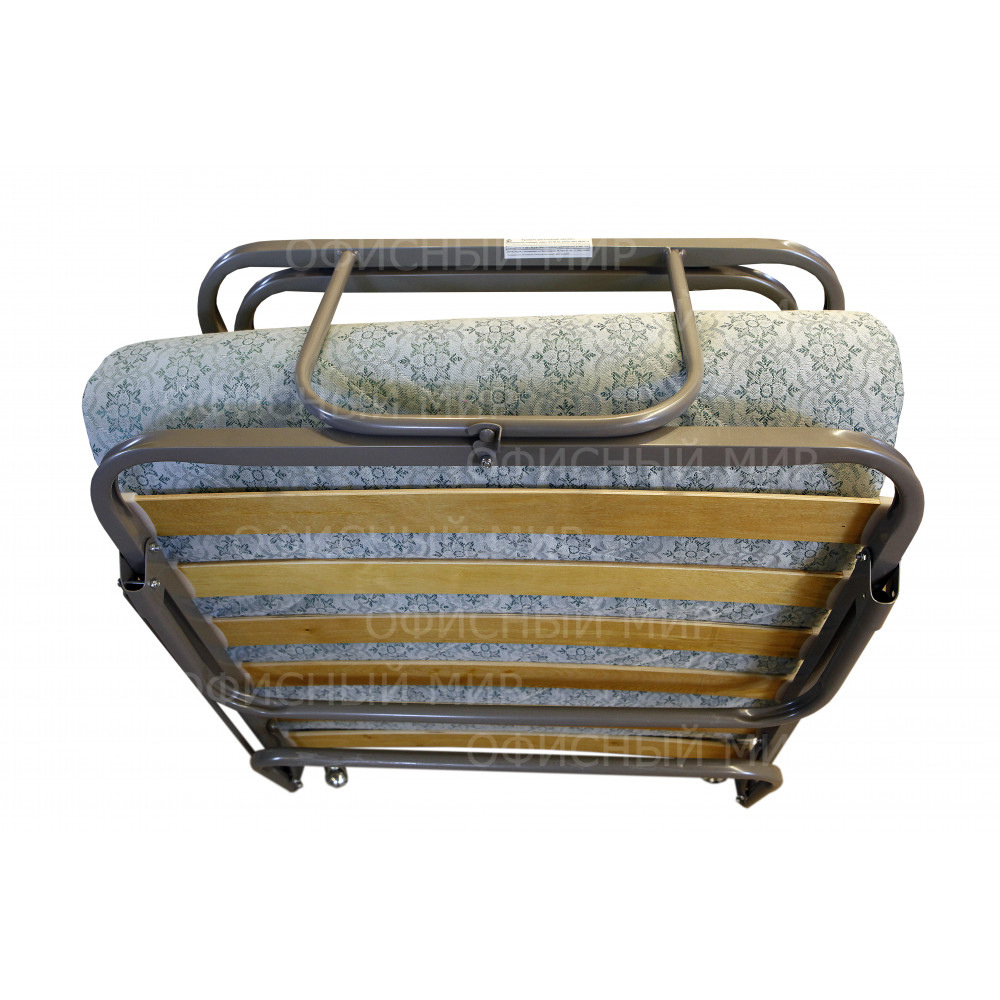 Удобный механизм трансформации подголовника и всей раскладушки, надёжное крепление  ламелей и колёсных опор существенно увеличивает срок службы. Удобно передвигать и хранить.