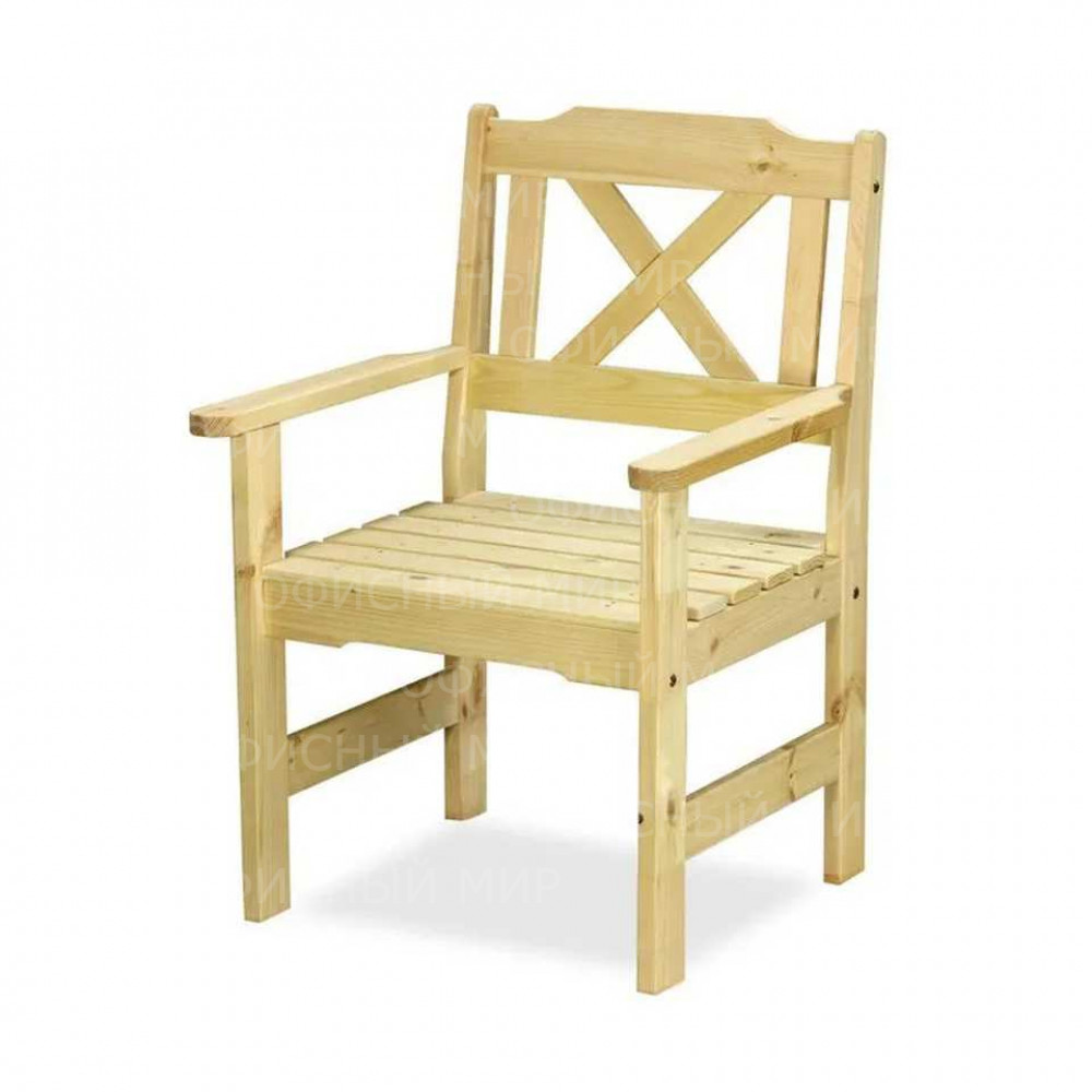 Изысканное садовое кресло. Строгие формы подлокотников и обрешетки спинки идеально подойдут для украшения уютного уголка сада или помещения. Изделие неокрашенное.