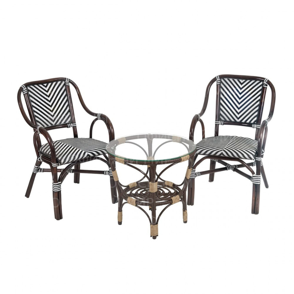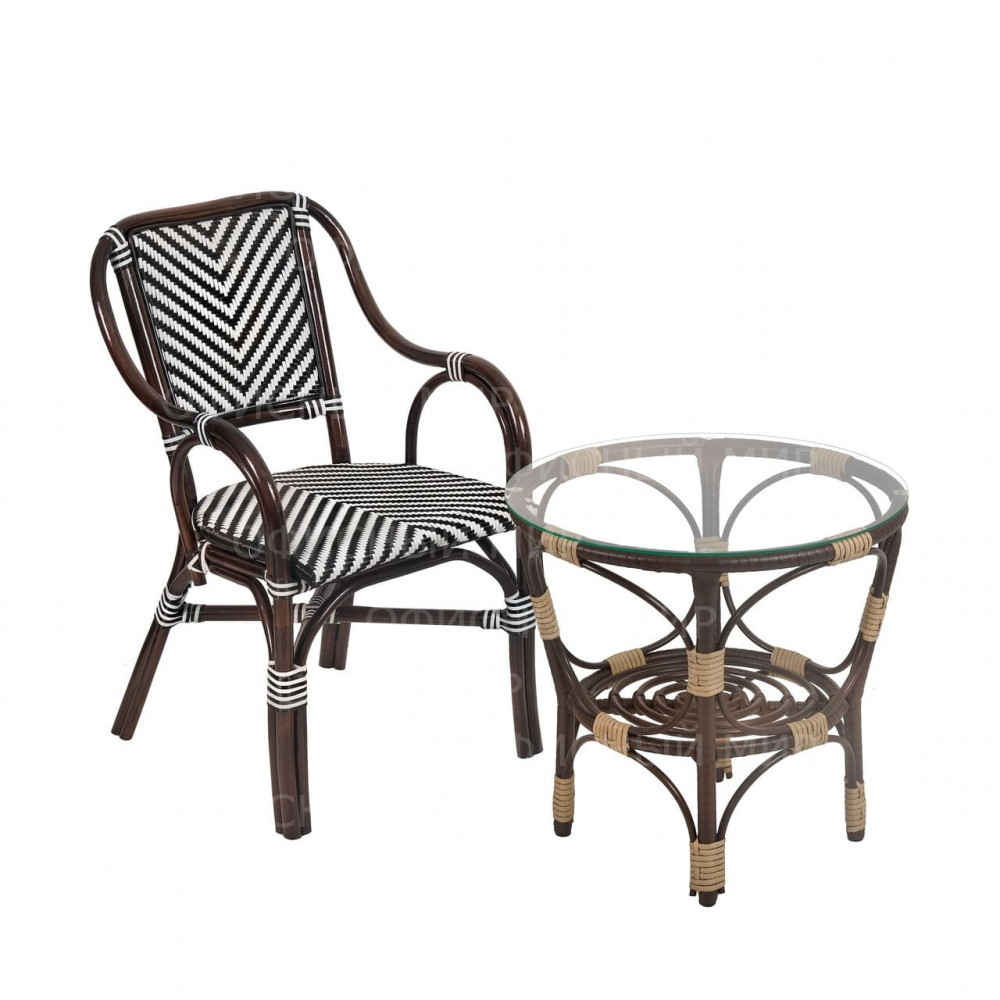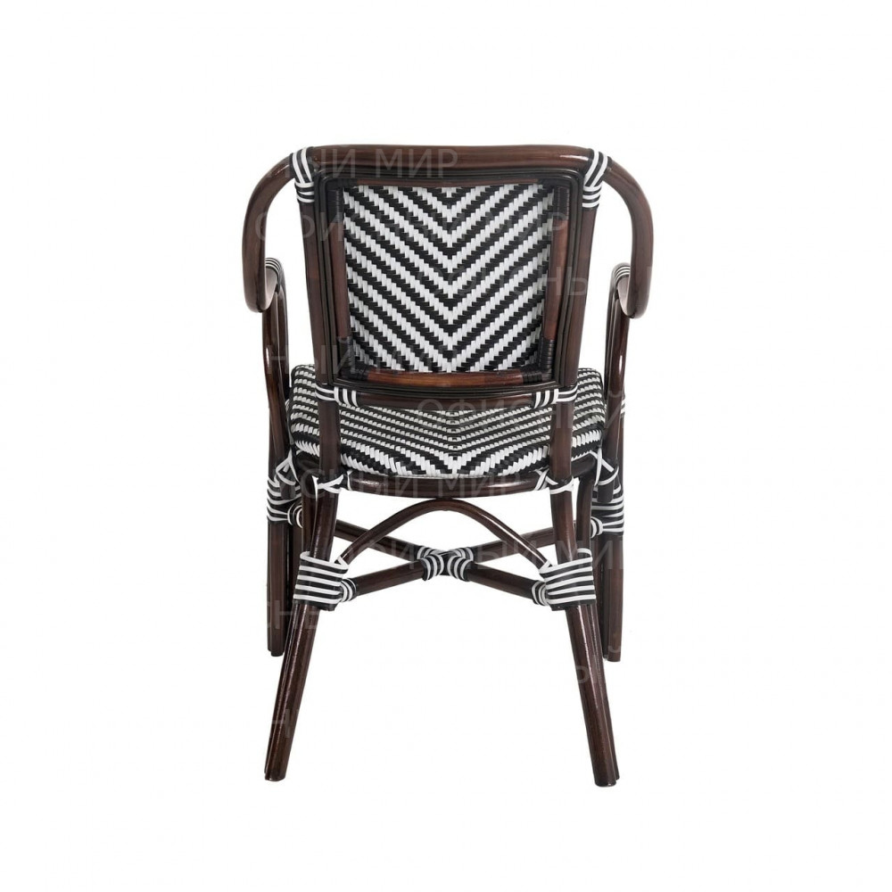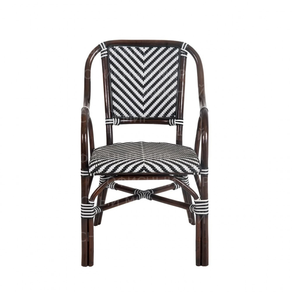 Универсальное кресло из комбинированного ротанга сочетает в себе стиль и функциональность. Его каркас выполнен из прочного ротанга благородного темно-коричневого цвета, а сиденье и спинка украшены плетением в черно-белую полоску, что придает изделию современный и свежий вид. Кресла из ротанга идеально подходят как для использования на даче, так и в кафе, так как материал устойчив к воздействию погодных условий. Это кресло станет отличным дополнением к вашему саду, террасе или кафе, обеспечивая комфорт и эстетическое удовольствие.