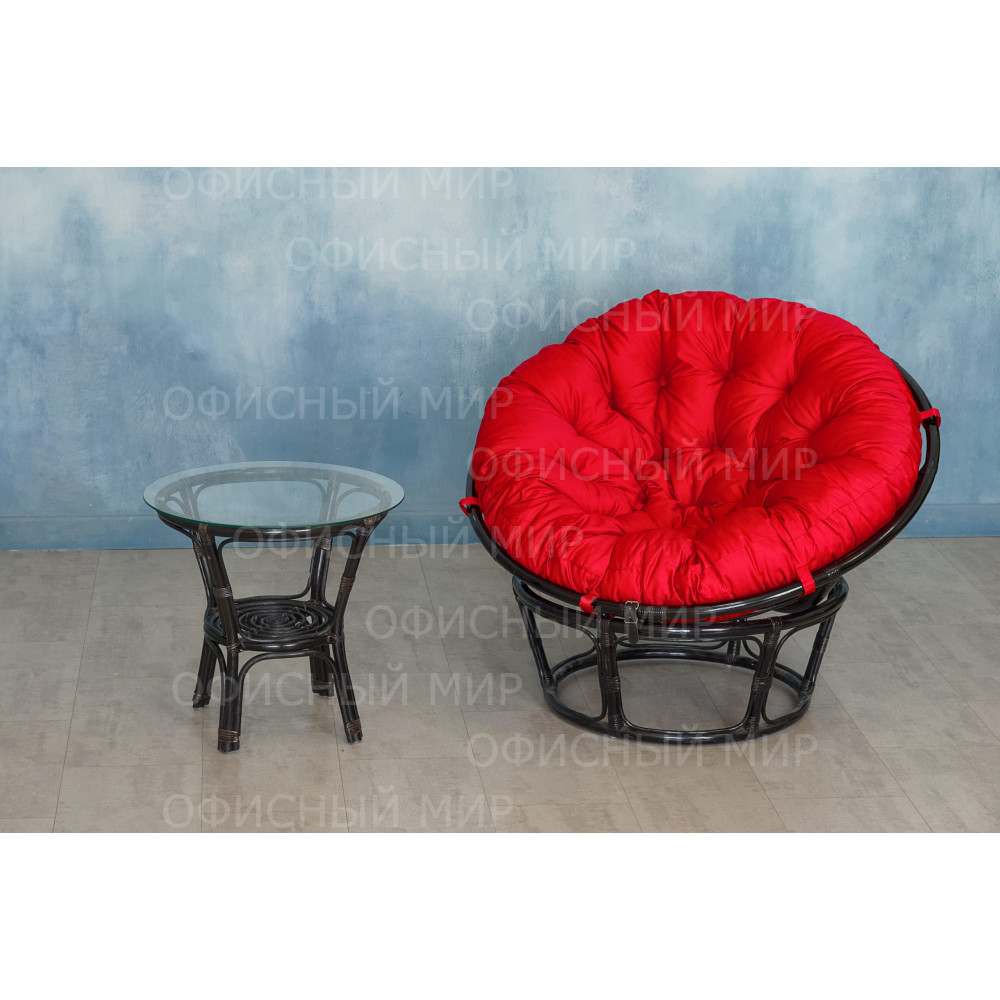 Кресло из ротанга Папасан с красной подушкой