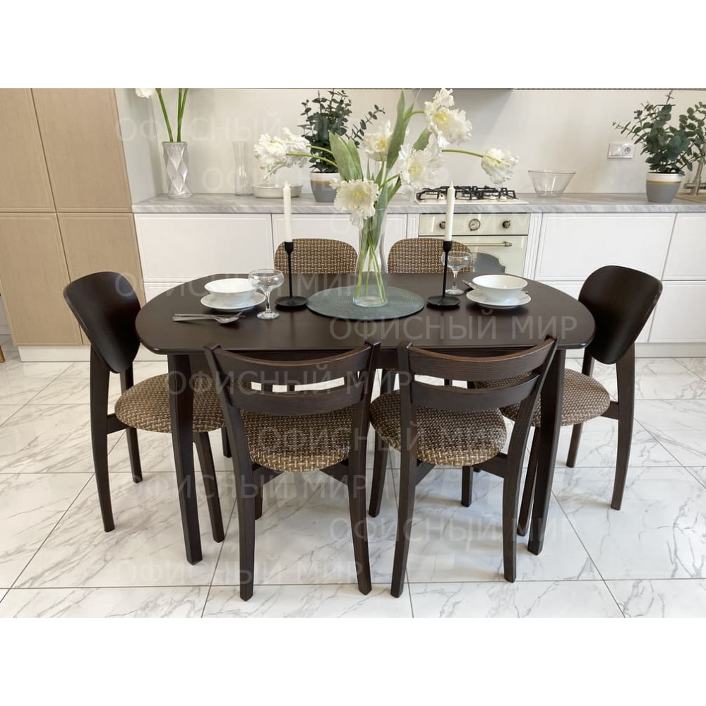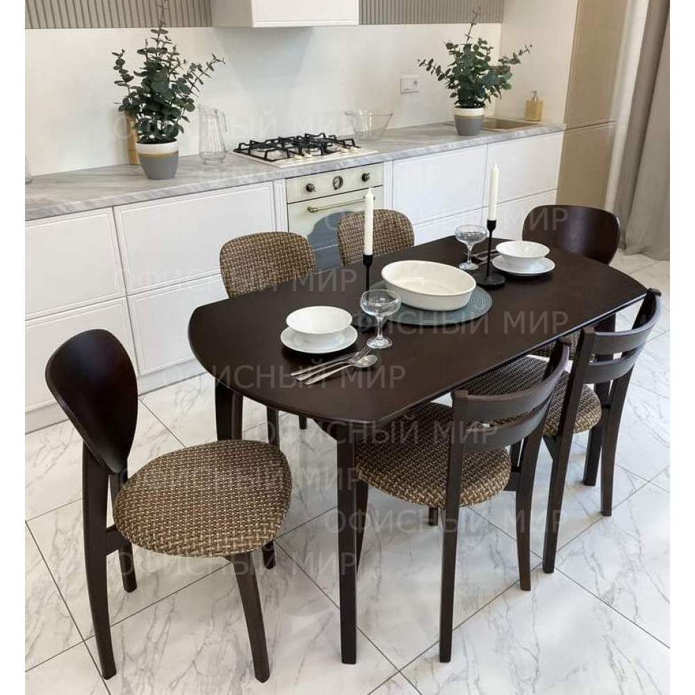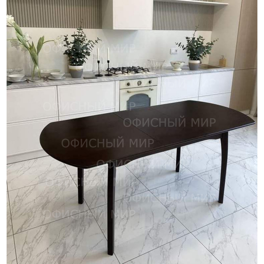 Прямоугольная столешница с закруглёнными краями, изящные ножки подчёркивают стиль и элегантность модели.