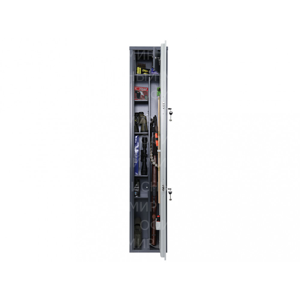 оборудован патронным отделением, запирающимся на ключ, полками и ложементами для ружей