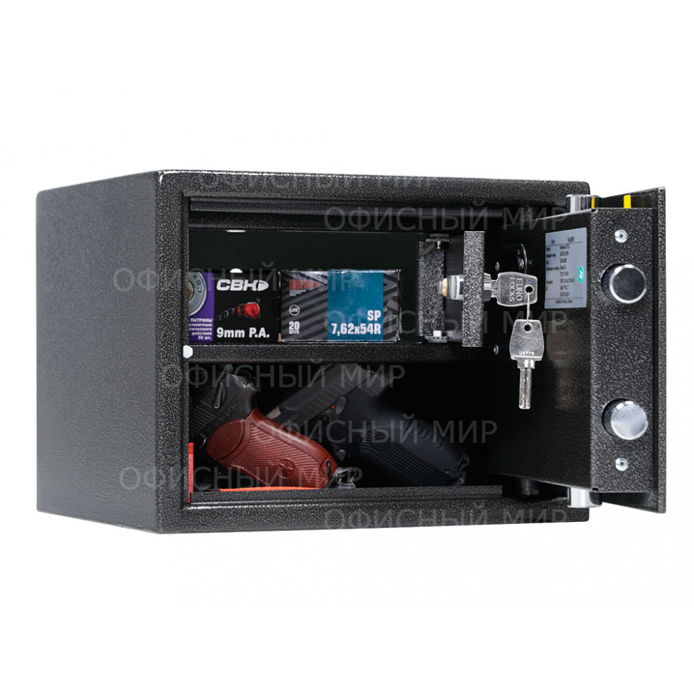 Предназначен для хранения огнестрельного оружия и патронов к нему. Сейфы соответствуют требованиям ст.59 Постановления правительства РФ № 814 от 21 июля 1998 года «О мерах по регулированию гражданского и служебного оружия и патронов к нему на территории РФ». Соответствуют Классу А.1 оружейных сейфов в соответствии с требованиями ГОСТ Р 56367-2015.
