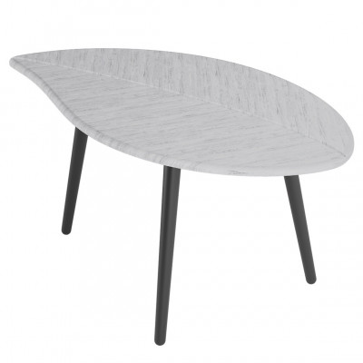 Особенностью журнального стола "Берли"является оригинальное сочетание фрезеровки столешницы в форме листа дерева и текстуры декоративного покрытия. Опоры выполнены из дерева.